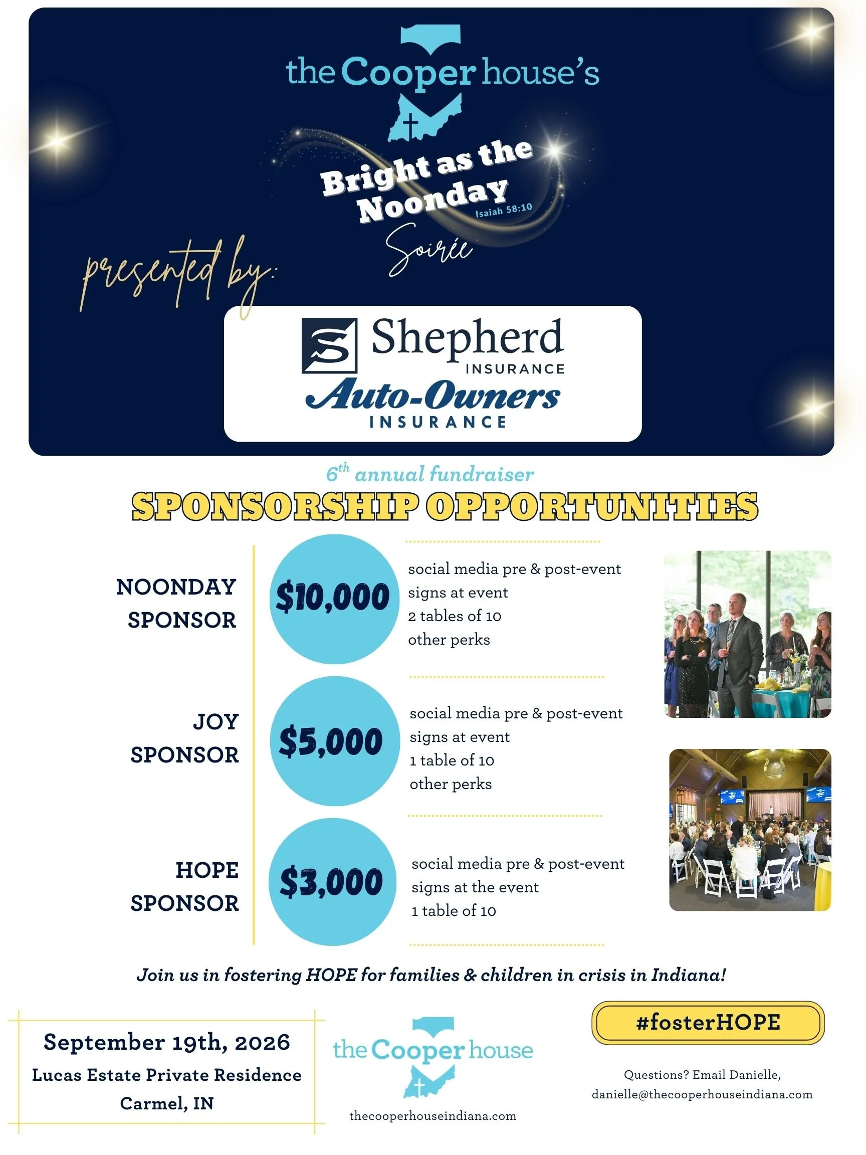 Can you believe this will be our 6th year?! Bright as the Noonday Soiree is back on September 19th, 2026, proudly presented by Shepherd & Auto-Owners Insurance.